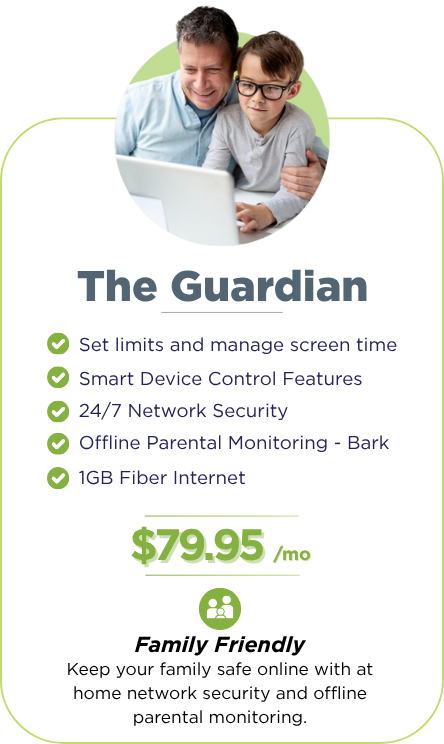 Optional Bark, parental controls, and security add-ons.